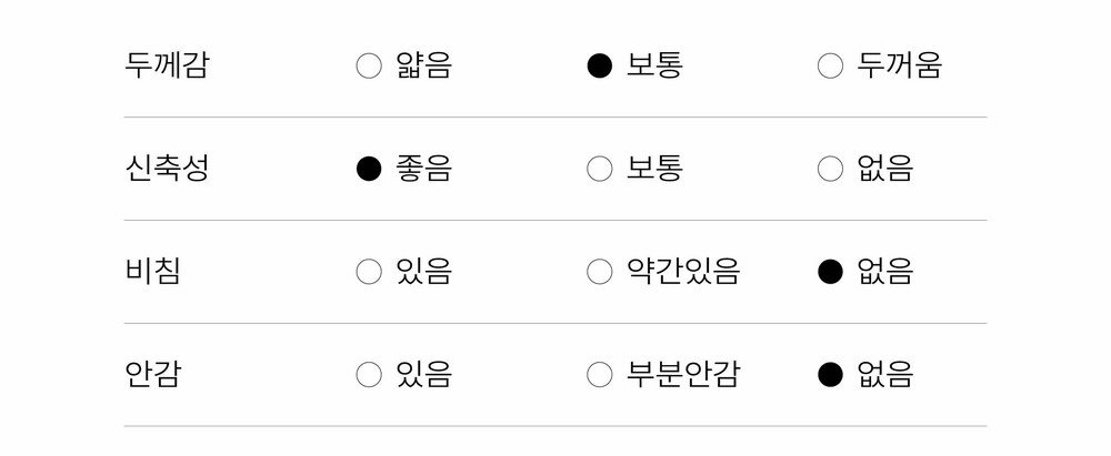 - 원단 특성에 따른 약간의 잡사,울 뭉침 등은 불량사유X
